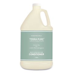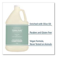 Elevate guest experience and embrace luxury and sustainability with the Terra Pure® Earth Conscious gallon collection. This salon-quality formula is a premium conditioner that delivers results guests will thoroughly enjoy with every use. Infused with the nourishing goodness of olive oil and aloe vera extract, it ensures silky-smooth, deeply hydrated and shiny hair. The subtle fragrance adds a refreshing, invigorating touch to guests' hair care routine. Terra Pure® conditioner is vegan-friendly, free from harsh chemicals, and packaged in a bottle made with recycled content. The convenient gallon bottle is designed to refill both wall-mounted and stand-alone dispensers, reducing waste and cultivating a sustainable mindset. This product is part of the EcoWell® Health and Wellbeing group, making this the perfect choice for guests.